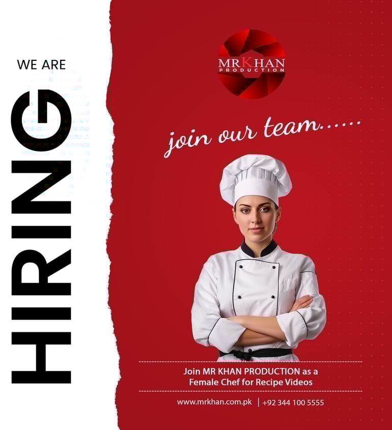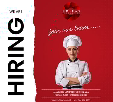 Join MR KHAN PRODUCTION as a Female Chef for Recipe Videos! Showcase your culinary talent and passion for Pakistani cuisine. Apply now to be part of our creative team